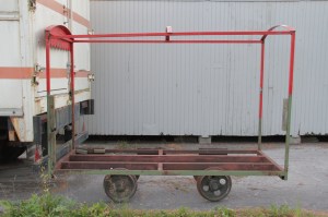 One of the carts from the themepark sports two pairs of re-used wheels.